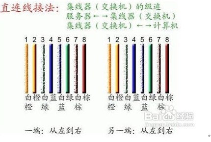 平行線的做法是:兩頭同為568A標準或568B標準,(一般用到的都是568B平行線的做法)
