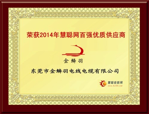 恭賀東莞市金鱗羽榮獲慧聰網2014年百強優質供應商