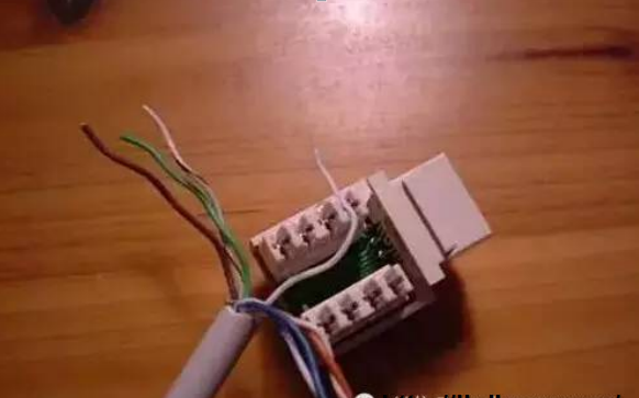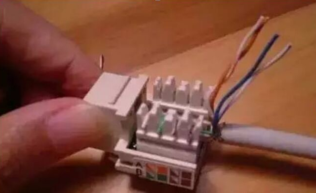 2、開始打線,先不要拆開各線對,在將相應線對預先壓入打線柱時才拆開。按照信息模塊上所指示的色標選擇我們偏好的線序模式(在一個布線系統中最好只統一采用一種線序模式,否則接亂了,網絡不通則很難查)。