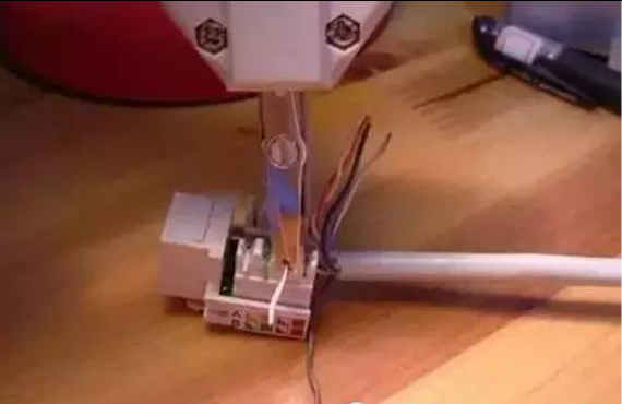 3、將全部的線都壓進各槽位后,用工具壓住模塊和線,用力壓下去,將線卡在模塊里面,并把多余的先頭剪掉。