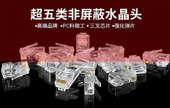 金鱗羽牌超五類水晶頭采用高阻燃聚碳酸酯制作,通過高精度儀器制造可實現更高的插拔次數、防松動、高透明、自鎖,芯片采用高強力銅合金,確保大于同類產品五倍的導通性能。產品介紹